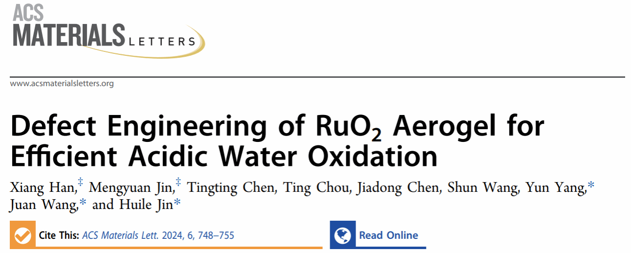 近日,beat365官方网站2021级化学(师范)专业本科生韩翔在权威期刊ACS Material Letters上发表题为Defect Engineering of RuO2 Aerogel for Efficient Acidic Water Oxidation(缺陷工程助力RuO2气凝胶用于高效酸性水氧化)的研究论文(指导教师为王娟副教授、金辉乐研究员和杨云研究员)。