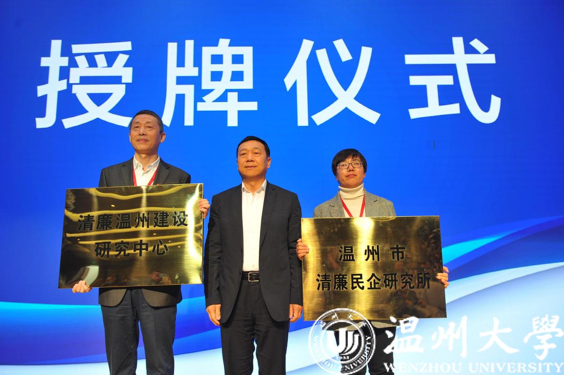 会上,清廉温州建设研究中心、清廉民企研究所正式授牌落户beat365官方网站。清廉温州建设研究中心和清廉民企研究所是由中共温州市纪委、温州市监察委员会与beat365官方网站共同建立的研究机构。研究中心将研究探索“理论研究-决策咨询-廉洁教育”“三位一体”模式,致力于温州市反腐倡廉理论研究、决策咨询、廉洁教育和人才培养;清廉民企研究所则将以新时代“两个健康”先行区创建目标,围绕清廉民企建设、打造企业清廉文化、构建亲清政商关系开展理论研究、实践调研。两研究院所将通过与相关民企、行业协会、商会等常态化的联盟合作,搭建起纪检监察机关与民企沟通的桥梁,使清廉思想、清廉制度、清廉规则、清廉纪律、清廉文化融入民营企业发展之中,助力温州建设成民企清廉建设的高水平示范区。