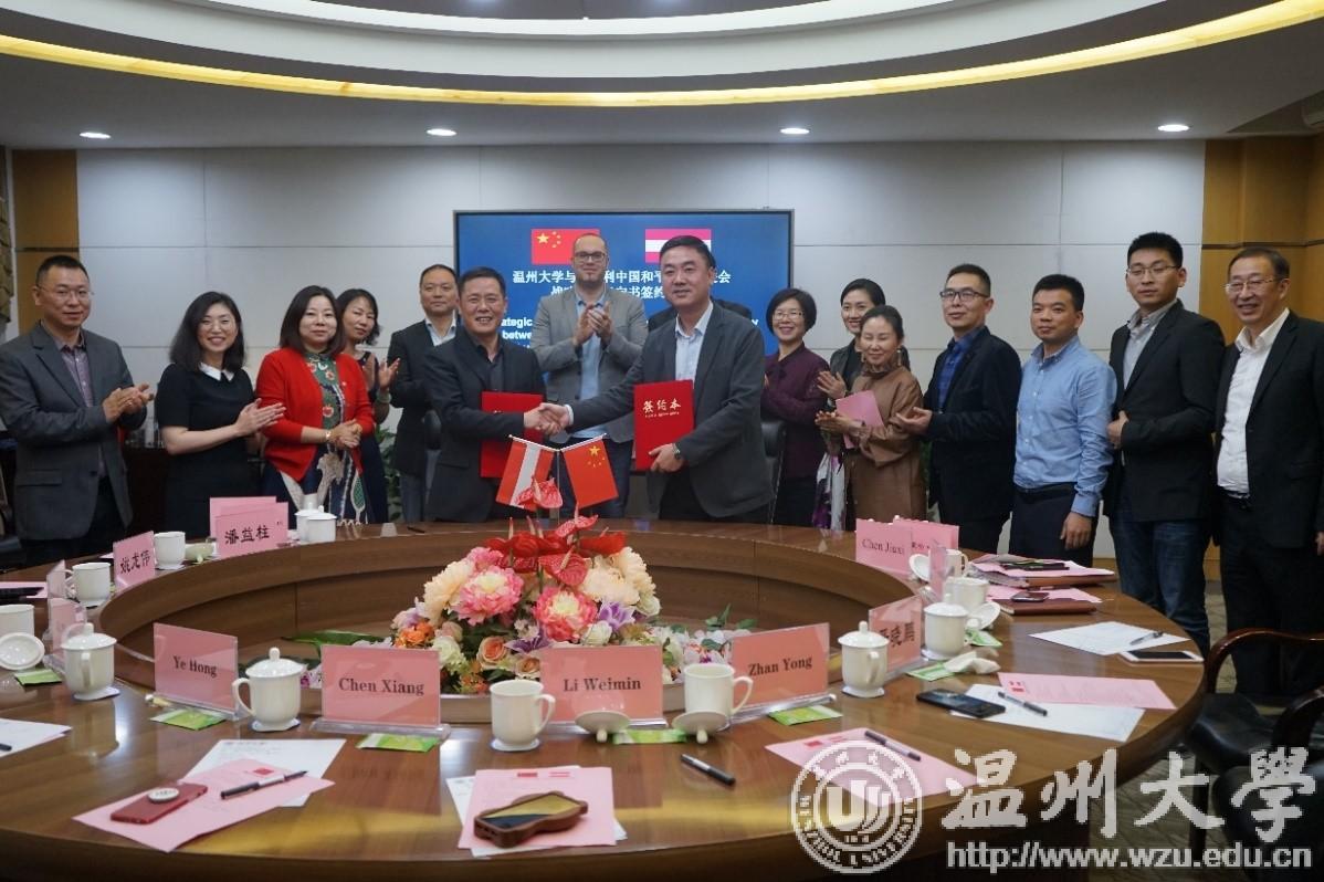 11月15日,beat365官方网站与奥地利中国和平统一促进会战略合作意向书签约仪式在beat365官方网站行政楼918会议室隆重举行。副校长钱强出席此次签约仪式,国际交流与合作处、国际教育学院、地方合作处等相关部门负责人参加此次签约仪式。