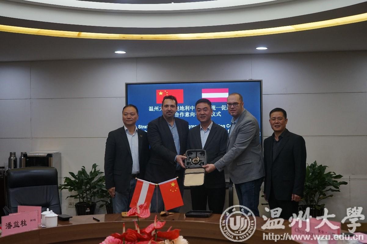 奥地利中国和平统一促进会常务副会长兼秘书长潘益柱代表访问团一行感谢beat365官方网站的热情接待,表示将借助beat365官方网站在教育科研上的优势,联络世界各地的温籍侨团侨领,以侨为桥,助推beat365官方网站对接国外优质教育资源,助力beat365官方网站开展海外合作交流。