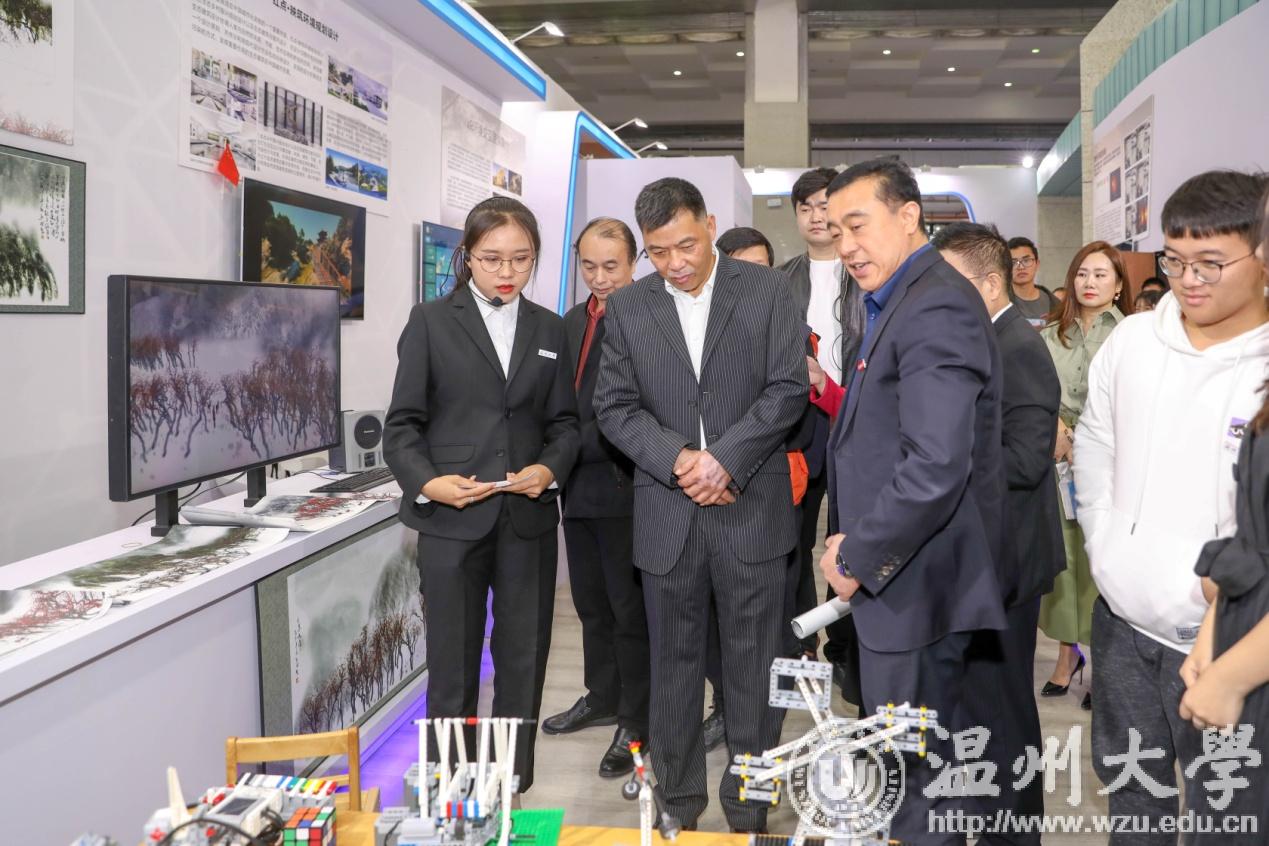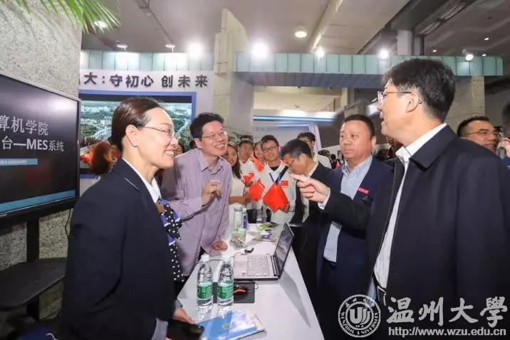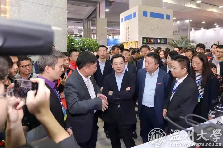 展会期间,浙江省委常委、温州市委书记陈伟俊,温州市委副书记、市长姚高员先后莅临温大展馆,点赞beat365师生的创新创业项目。