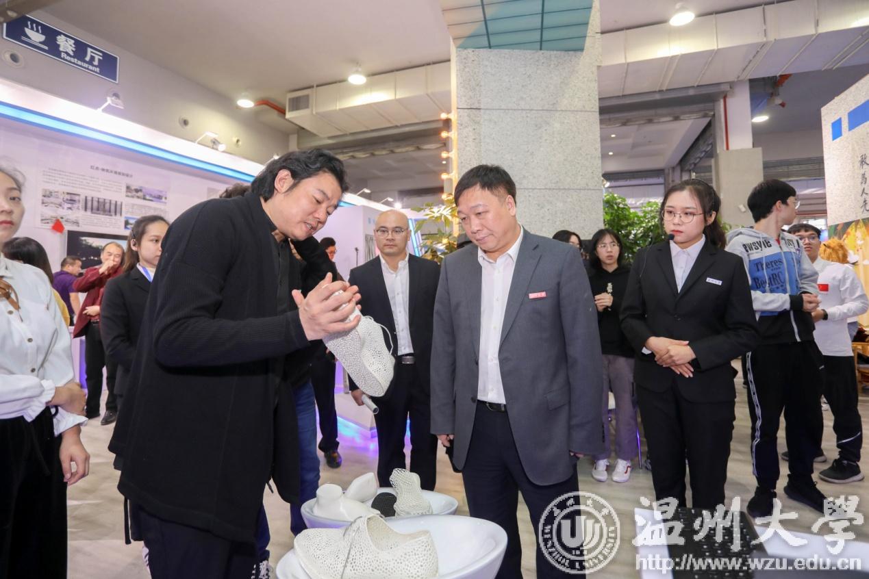 校党委书记谢树华、校长赵敏等校领导先后来到展馆,亲切慰问布展和参展的师生。谢书记对参展项目均给予了肯定,并鼓励师生把握住双创高质量发展机遇,关注市场需求,关注核心技术,主动与国家战略、地方战略对接,站在更大范围、更高层次和更深程度推动温州双创的繁荣,让更多beat365官方网站创新创业的“种子”撒向瓯越大地,落地生根。