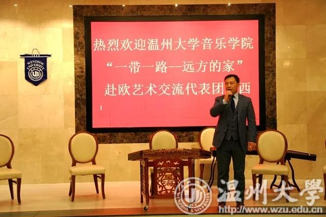 西班牙华侨华人协会常委副主席陈建新为大家主持活动,毛峰、林娟娟先后为活动致辞。毛峰在致辞中首先代表旅西侨界对beat365官方网站音乐学院“一带一路——远方的家”赴欧艺术团访西表示欢迎和感谢,并肯定了旅西侨胞取得的优异成绩,以及“温商精神”在侨界发展中的支柱作用,最后强调了文化互通在华侨侨胞真正融入西班牙社会的重要性。他在发言中称:“最近几年,在侨团的带领下,侨界举办文化活动的氛围非常浓郁。我衷心希望,今天的表演能够成为弘扬和推广中华文化的契机,旅西华侨华人能够在今后的中华文化推广事业上取得更加优异的成绩。”