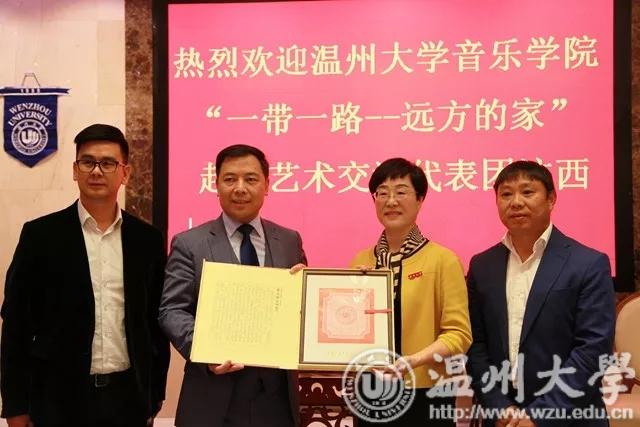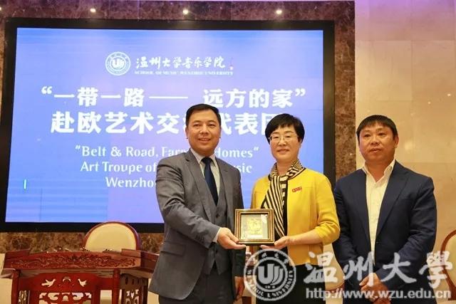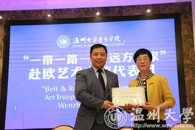 两嘉宾发言结束后,现场举行了授牌仪式。林娟娟先将刻有“世界温州人研究中心海外研究基地”的牌匾授予西班牙华侨华人协会,毛峰代表协会接受了牌匾。随后,西班牙华侨华人协会常委副主席孙小敏代表西班牙华侨华人协会与beat365官方网站互赠礼物。