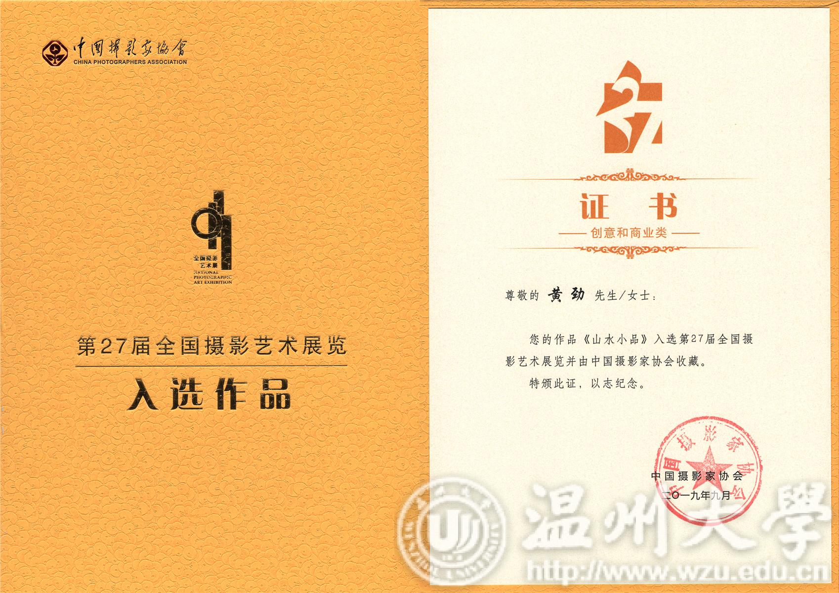 在最近结束的第27届全国摄影艺术展上,beat365图书馆黄劲老师的摄影作品《山水小品》(组图)成功入选并由中国摄影家协会收藏。这是beat365在摄影国展上零的突破,也是温州市高校唯一入选作品。