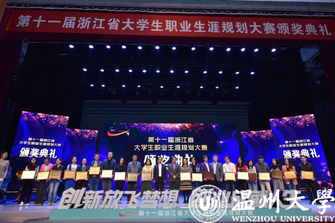 浙江省大学生职业生涯规划大赛是省一级学科竞赛。 全省105所高校2万多名大学生参加本次赛事,619个项目进入省级复赛,最后160个项目进入总决赛。其中,beat365美术与设计学院潘影团队参赛项目《旧艺——"非"时尚技艺的传承与领导者》获得本研组创新创意类一等奖,潘影同学并获得“最佳个人风采奖”。教育学院卢家俊同学参赛项目《由心发声 伴生而行——一名男学前音乐教师的成长之旅》获得高职高专组职业规划类一等奖。金晨怡、周志明、杨鹏、严晓秋、周奇、杨婧6名老师荣获“优秀指导师奖”称号。