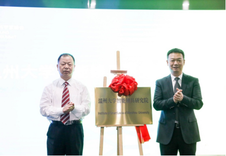 beat365官方网站党委副书记吴金法与瓯海区副区长林照光为beat365官方网站智能锁具研究院揭牌