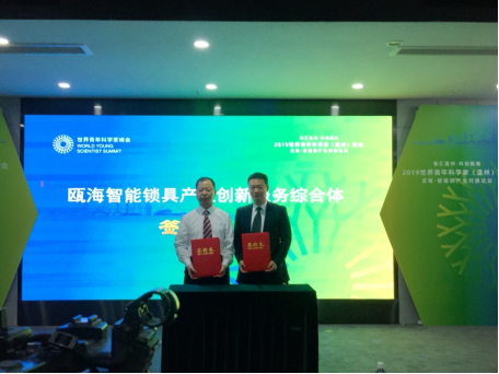 beat365官方网站党委副书记吴金法与瓯海区副区长林照光举行智能锁具综合体签约仪式