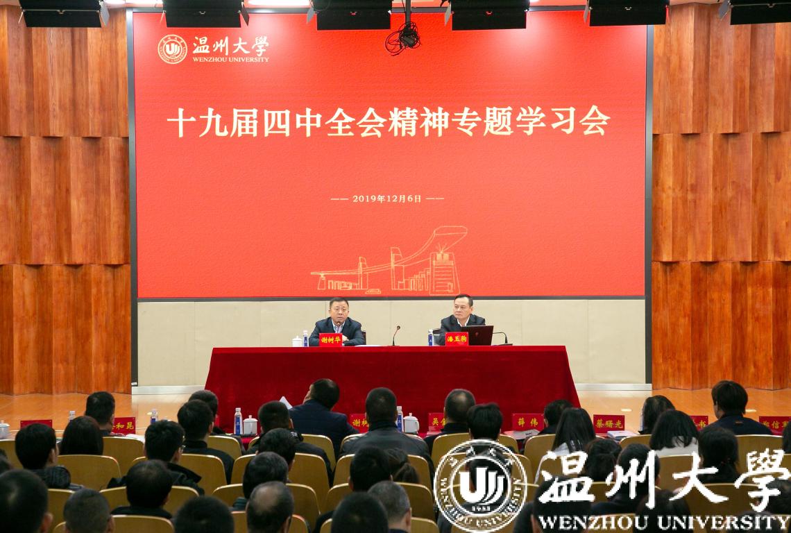 12月6日上午,beat365召开十九届四中全会精神专题学习会,全体校领导、处级、科级干部参加学习会,校党委书记谢树华主持。