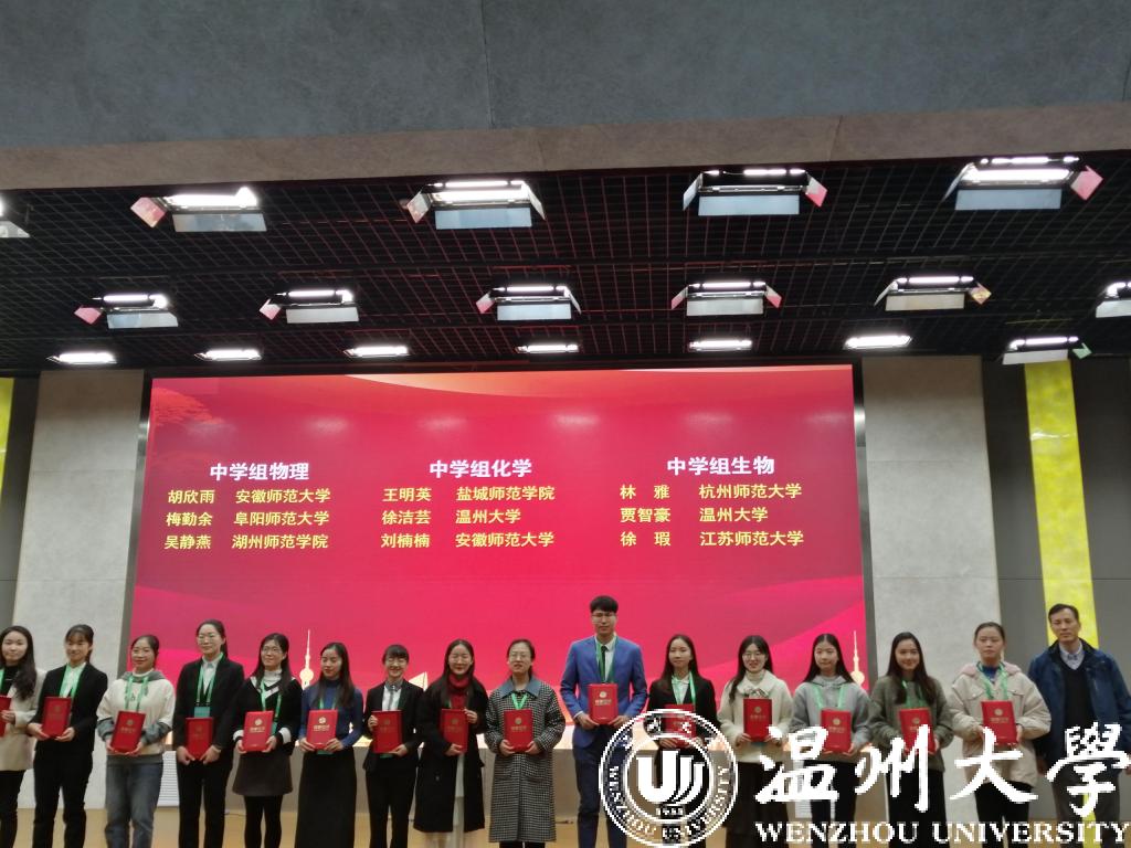 师范生教学基本功大赛分中学12个组、小学组、学前组进行比赛。其中中学组的比赛内容有教学设计、课件制作、即席讲演、上课与板书四个部分构成。beat365入围的4名师范生分别参加了中学组的数学组、物理组、化学组和生物组的比赛。经过激烈的竞争,16化学(师范)专业的徐洁芸同学、16生物科学(师范)专业的贾智豪同学荣获一等奖,16数学与应用数学(师范)专业的李纯洁同学荣获二等奖,16物理学(师范)专业的李俊瑛同学荣获三等奖。