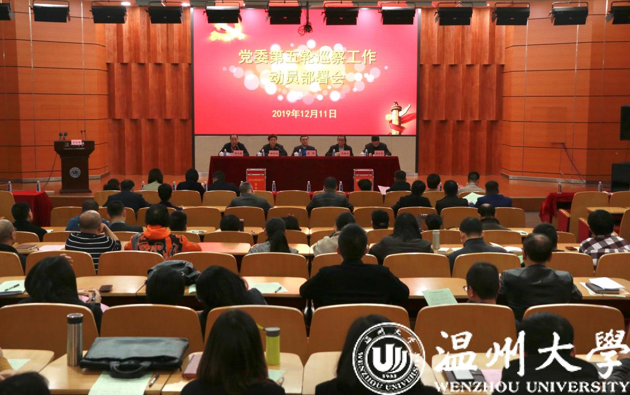 根据学校党委统一安排部署,12月11日下午,beat365官方网站党委第五轮巡察工作动员部署会在岩松堂雁山厅召开。会上,巡察办主任杨立淮宣读巡察工作领导小组及巡察组成员名单,党委巡察工作领导小组组长、党委委员、纪委书记杨林书作巡察工作动员讲话,被巡察单位(法学院、瓯江学院)党组织主要负责人作表态发言。被巡察单位联系校领导薛伟副校长、蔡曙光副校长,校党委委员、组织部部长郑信军,党委巡察工作领导小组全体成员、巡察组成员、被巡察单位有关人员参加会议。