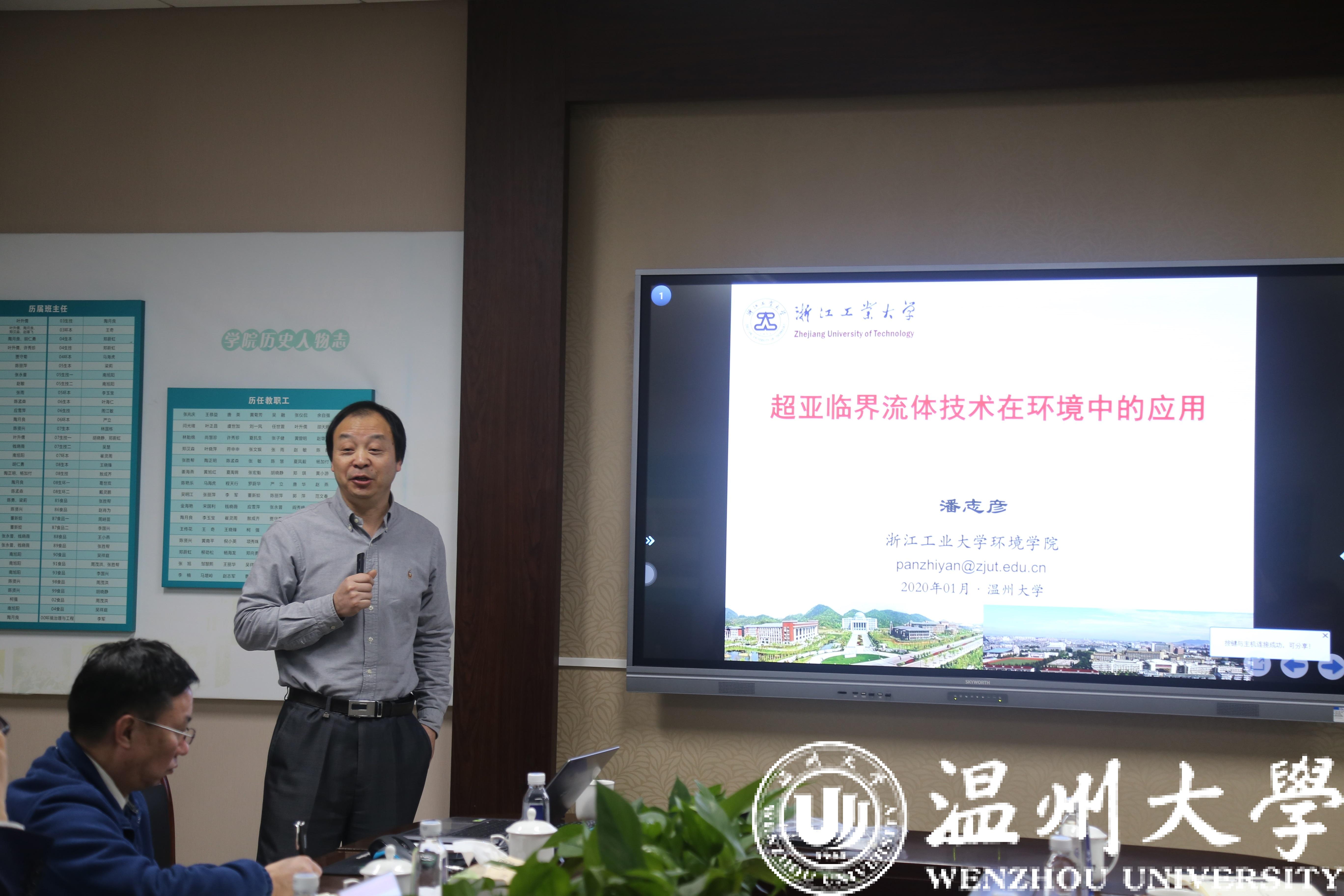 应beat365城镇水污染生态治理技术国地中心主任赵敏教授邀请,中国环境科学研究院吴丰昌院士与浙江工业大学潘志彦教授于1月13日上午来校访问交流,并在生环学院会议室作学术报告。