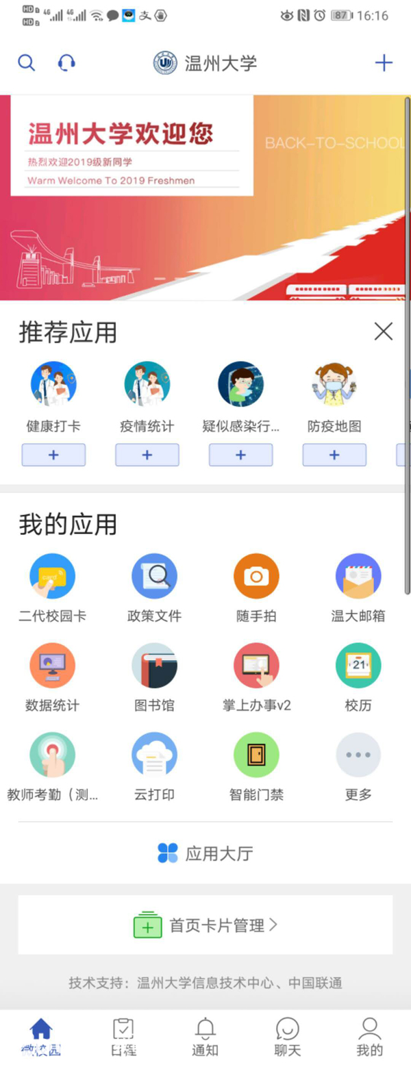 为此,学校党委办公室和信息技术中心立即响应学校号召,实时更新“最多跑一次”校务服务平台-“我的温大”,争取做到从“最多跑一次”转变为“一次都不跑”。中心迅速推出了一系列防疫应急模组,诸如健康打卡、疫情统计、入校证明、智能问答、线上课程查询、课程免听、间断听课、财务报销审批、横向课题经费审批、教职工考勤报送等应用和流程,为战“疫”时期的“弹性”工作制全面实施技术保障。