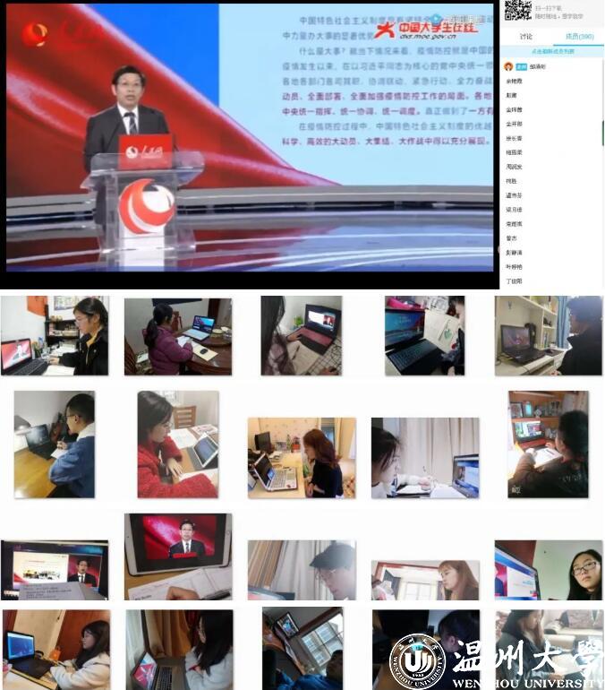 在本次思政大课过程中,学校师生通过手机、电脑等形式,共聚“云”端,认真听课,积极思考。在线直播学习结束后,学校组织学生班级开展线上讨论,各学院还以“思政大课”为契机召开专题“云班会”,组织师生交流学习感受,进一步强化对思政课讲授内容的理解,将教育效果延伸到课下和生活中,真正把思想引领做到位,做到学生心里。