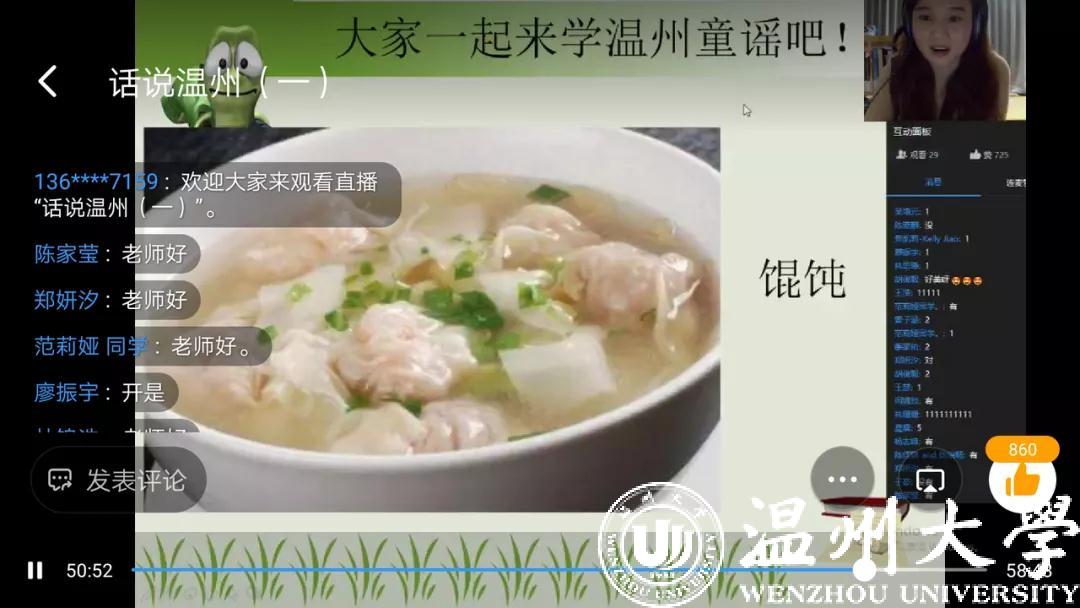 这故乡的味道,第一香,是风景。伴随着温州话版 “温州欢迎你”动听的歌声,美丽温州的画面缓缓呈现在孩子们的面前。通过云端网课的方式,孩子们好像在经历一场奇幻旅行,感受到了楠溪江、雁荡山大气豪迈,也体会到了南麂岛的小巧精致。网络,让孩子们即使身处异国他乡,也能将温州的青山绿水、大街小巷尽收眼底。