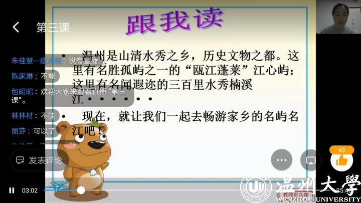 beat365官方网站作为侨乡温州唯一一所综合性教学研究型大学,是国务院侨办首批华文教育基地、中国侨联对外文化交流基地。学校始终秉持“以‘侨’为桥,为侨服务”的理念,致力于开展海外华文教育教学,已逐步在欧洲树立起华文教育的“温大”品牌。本次海外华裔青少年云端华校华文班是疫情期间继云端华校名师公益大讲堂活动后,学校服务海外侨胞的又一个重要举措,以“快乐汉语 亲子共学”为基本教学理念,为广大海外华裔青少年量身打造了《基础中文》《话说温州》《趣味汉字》《成语故事》《家庭教育指导》等课程。本次华文班根据学生的中文水平课程分为初级1班、2班,中级班、高级班等四个班级,每班配备一名任课老师和班主任,以钉钉群直播形式开展。