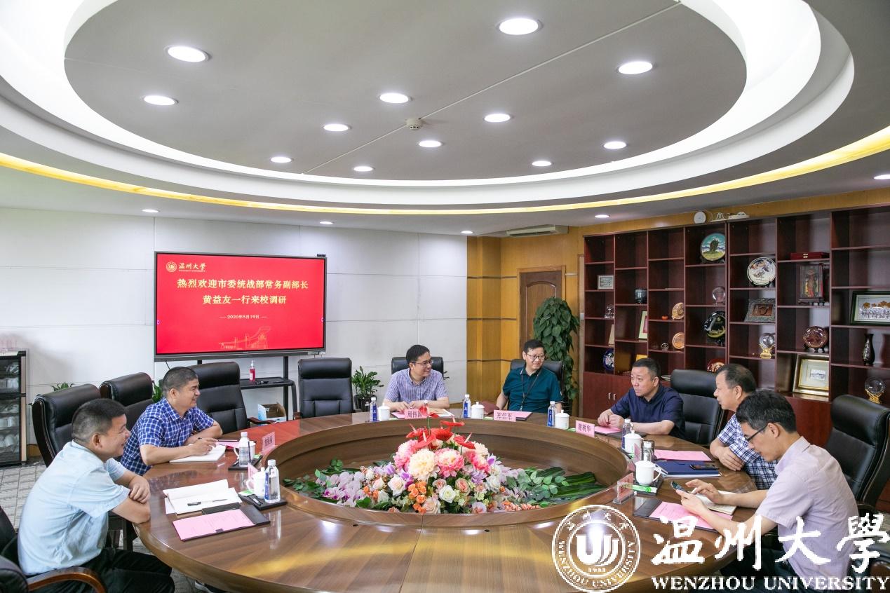 5月19日上午,温州市委统战部常务副部长黄益友一行莅临beat365,就学校统战工作开展专题调研。校党委书记谢树华、党委副书记吴金法、党委委员郑信军出席调研会。