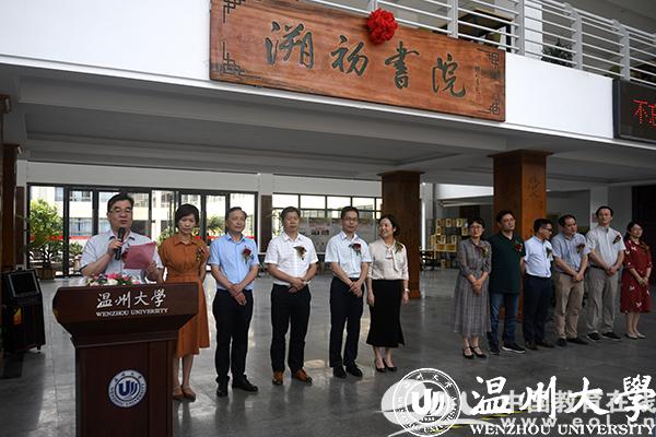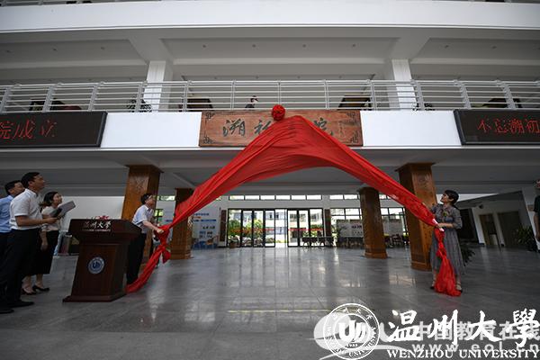 仪式由教育学院党委书记何毅主持,教育学院院长孙芙蓉介绍溯初书院的成立背景及概况,徐和昆副校长和学院领导共同为溯初书院揭牌并致辞。揭牌仪式上还宣读了北京师范大学教育学部、长三角高校书院联盟及江苏师范大学敬文书院等单位的贺信。贺信中,华东师范大学孟宪承书院、江苏师范大学敬文书院等兄弟书院对beat365官方网站溯初书院的成立致以最热烈的祝贺,并衷心祝愿溯初书院秉持“光大国族、造福人群”的温大精神,培育更多德智体美劳全面发展的优秀人才。