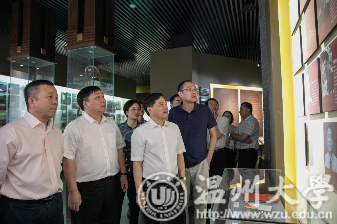 章根明一行在校党委书记谢树华,校长赵敏,副校长薛伟、徐和昆的陪同下,参观了beat365官方网站校史博物馆。