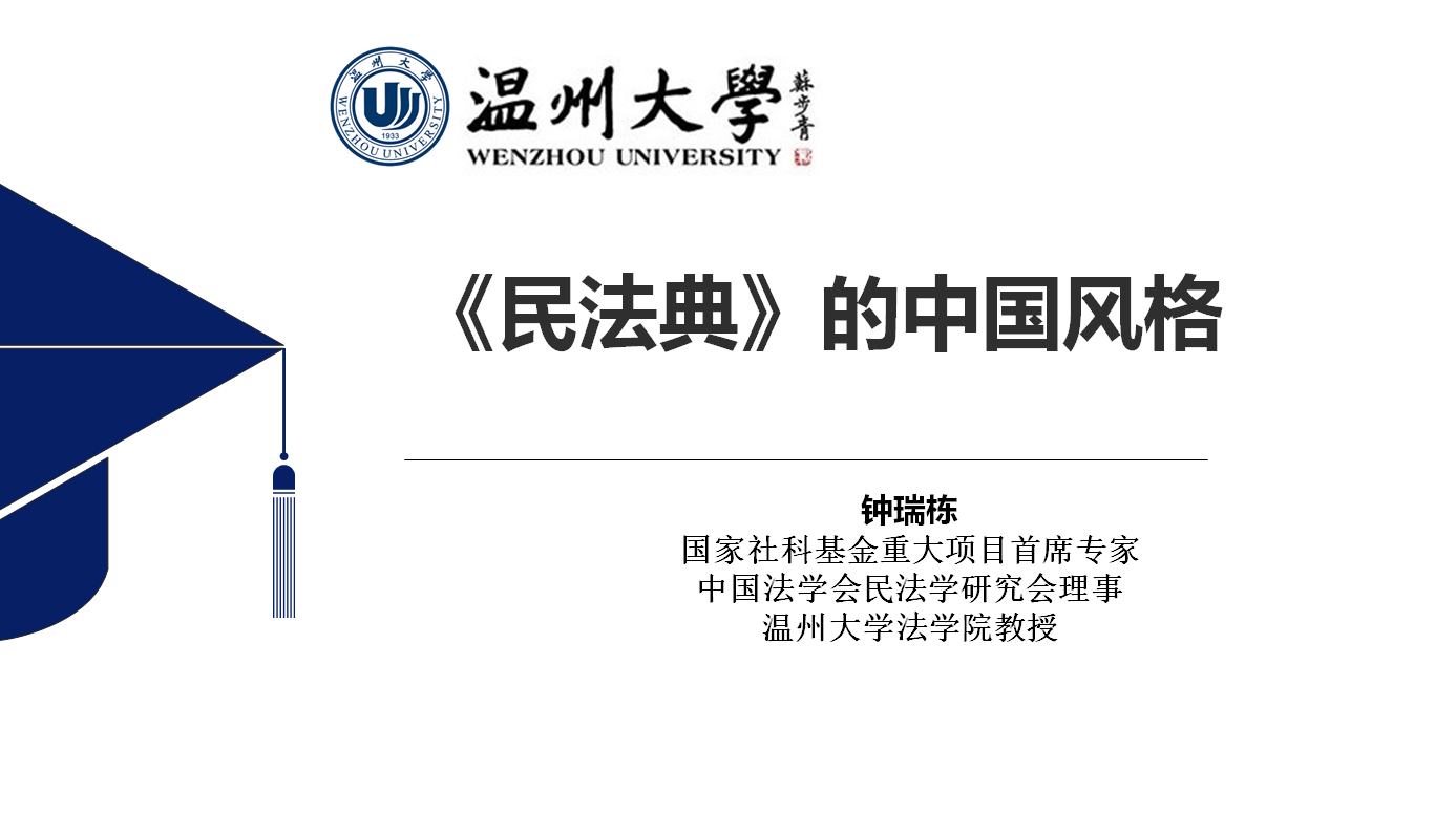 钟瑞栋教授以“《民法典》的中国风格”为主题对《民法典》进行了解读,阐释了我国《民法典》在“推进全面依法治国”“发展社会主义市场经济”“坚持以人民为中心”“推进国家治理体系和治理能力现代化”四个方面的重要意义。他指出,我国《民法典》通过总分结合的表达方式达致其体系化目标,总则编和六分编全面规定了民事主体的财产权利和人身权利,形成了一个完整的民事权利保护体系。《民法典》的核心理念在于私法自治及其限制,在我国《民法典》规定的基本原则中,平等原则和自愿原则是私法自治理念的体现,而公平原则、诚信原则、公序良俗原则、绿色原则则体现了对私法自治的必要限制。钟教授还对我国《民法典》的两处具体条款作了专门解读。最后,钟教授结合作为市政府重要工作内容之一的“两个健康”建设对《民法典》进行了深入阐释,他表示,《民法典》以任意性规范为原则,强制性规范为例外的规制方式是我国社会主义市场经济健康发展的重要保障,政府部门应当兼顾严格执法与保护私权,以保证《民法典》有效实施为重要抓手推进法治政府建设,把《民法典》作为行政决策、行政管理、行政监督的重要标尺。《民法典》的内容涵盖了民事主体“从摇篮到坟墓”的方方面面,而其语言又具有高度的专业性和抽象性,值得所有社会成员终生阅读、学习。