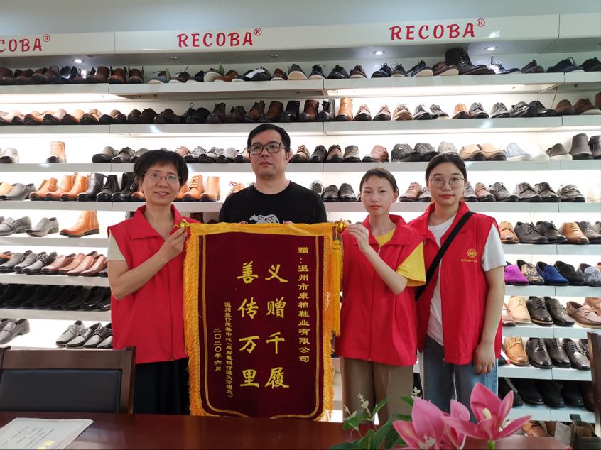 6月13日,beat365官方网站“缘来单脚鞋”项目组成员任奕沛、钟艺和温州一八二义工协会党支部书记朱阿姨,一同前往意万达鞋业有限公司、温州市康柏鞋业有限公司和温州市千金黎鞋业公司等六家知名鞋企,围绕如何提高赠鞋效率和服务质量进行了深切的交流,并赠送锦旗和证书,对他们的赠鞋义举表示感谢。