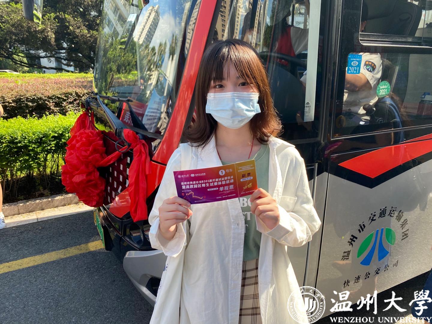 “开通快速公交,从大学城到市区,可以从1个多小时缩短到40多分钟,接下来跑面试、找工作方便多了。”今天上午,作为我市快速公交B301路的首批乘客,beat365官方网站计算机学院学生陈凯强显得特别高兴。快速公交B301路全程总长24.5公里,全程设置了专用车道。上午在beat365官方网站学院路校区举行的开通仪式上,快速公交集团邀请高教园区师生进行试乘体验。市交运集团李长江、朱祖荣、陈亮、校党委书记谢树华、校长赵敏、副校长蔡曙光以及温州医科大学党委副书记吕一军、温州职业技术学院副院长王向红、温州商学院副院长唐若等高校领导和试乘师生参加了上午的启动仪式。