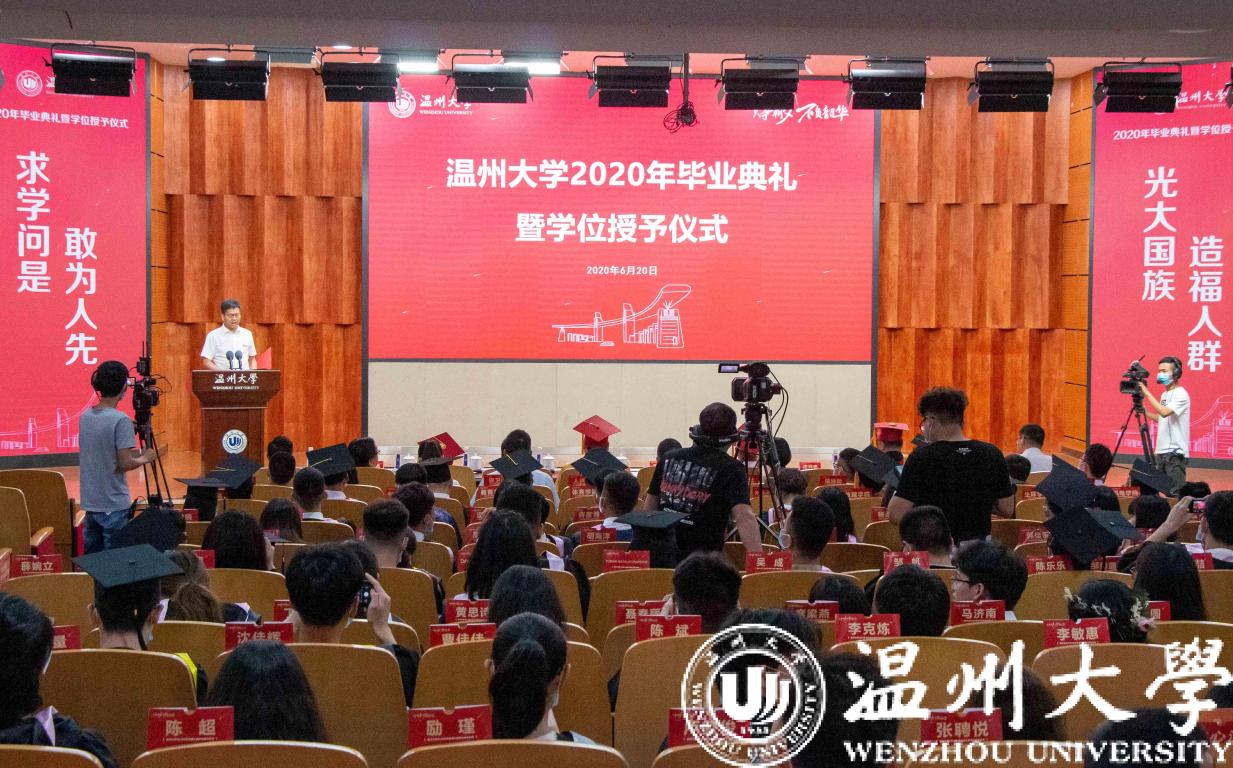 6月20日下午,2020年毕业典礼暨学位授予仪式在岩松堂雁山厅举行。校领导、教师代表、毕业生代表等参加典礼,校党委副书记庄兴忠主持。