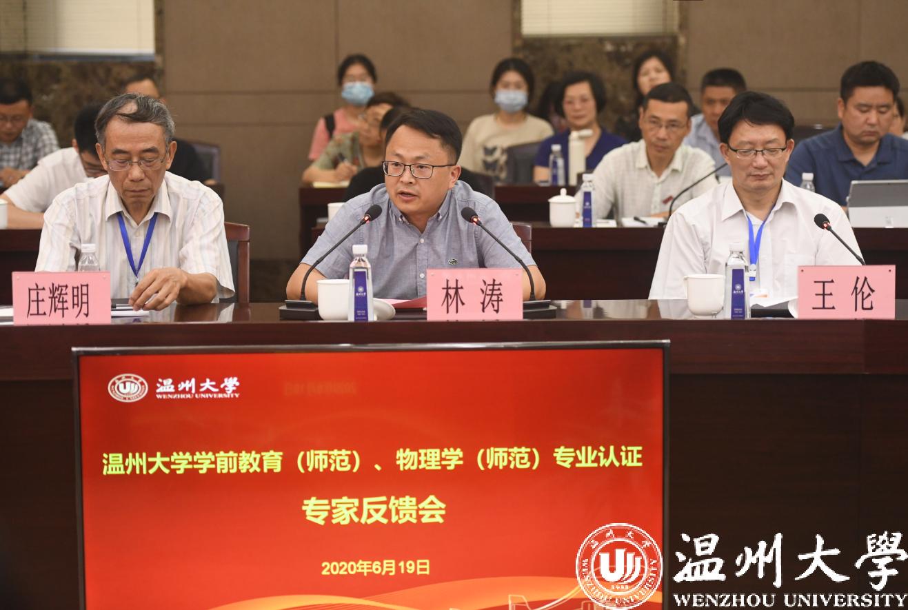 浙江省教育厅教师工作处林涛副处长讲话。他对beat365官方网站作为一所综合性大学在师范教育方面所表现出的办学特色和优秀的成效表示了充分的肯定,向两个专家组表示了崇高的敬意。他认为,开展师范类专业认证,促进师范教育质量提升,对于教育改革和发展具有重大意义,他希望beat365官方网站以此次专业认证为契机,创办一流师范教育,提高学校本科人才培养质量,为综合性大学如何培养中小学、幼儿园卓越教师提供样板和经验。