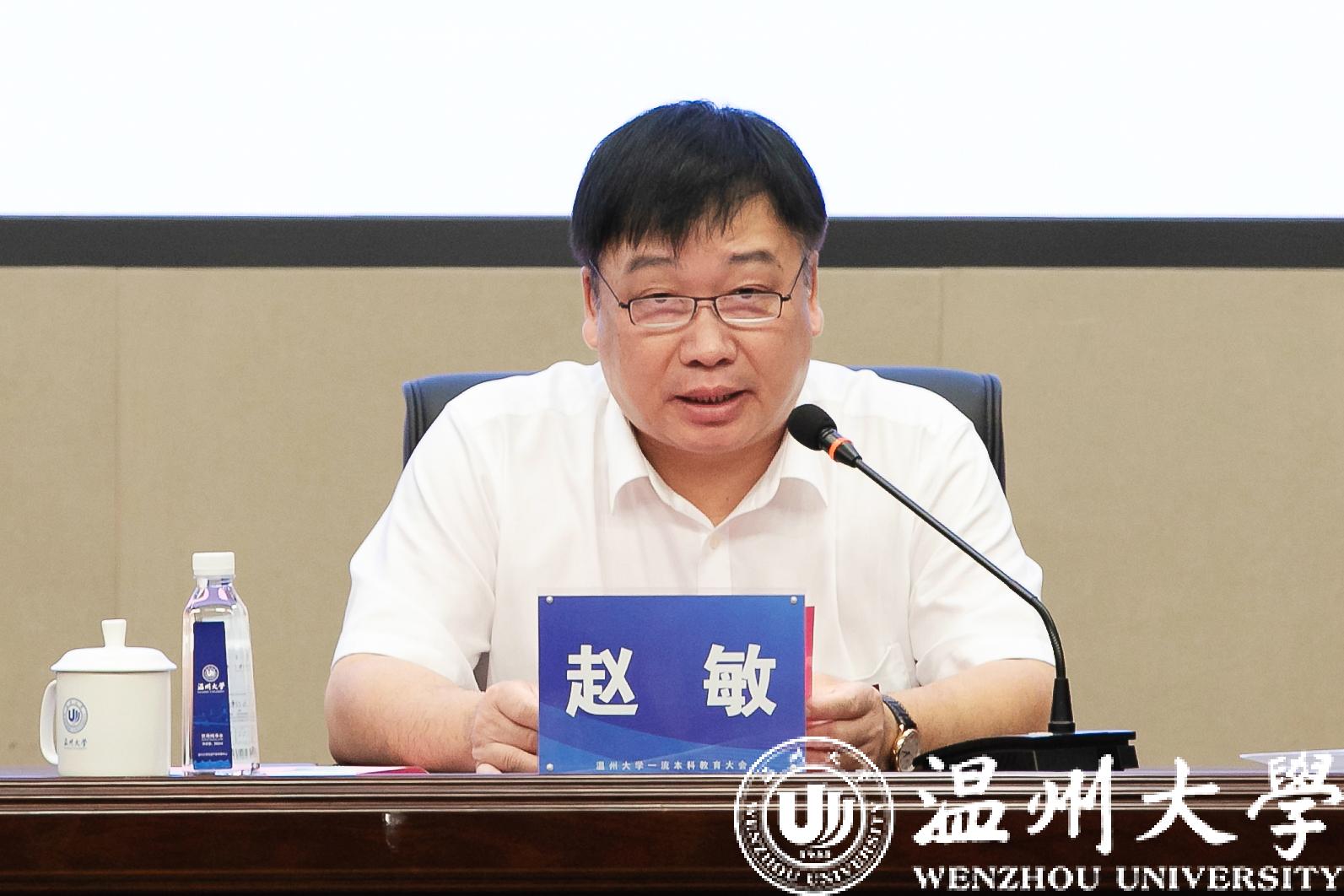 校长赵敏以《深化改革创新 提升内涵质量 全面建设中国风格、温大特色的一流本科教育》为题作主题报告。他指出,“十三五”以来,学校强化顶层设计、内涵建设和协同育人,大力实施人才培养质量提升工程,本科教育工作基础地位日益凸显,立德树人根本任务落到实处,专业内涵建设更加丰富,教学内涵建设进一步深化,学生创新创业教育成果涌现,教师教书育人能力不断提升,学校本科教育取得明显成效。赵敏还深刻剖析了当前本科教育面临的形势任务。他强调,建设一流本科教育是学校落实立德树人根本任务的具体行动,面临新形势、新要求和新挑战,一定要科学谋划未来,构建一流本科教育的发展体系,认真落实《beat365官方网站一流本科教育三年行动计划》。具体包括实施“六卓越一拔尖2.0”,高水平推进一流专业建设;开展课堂教学创新,高质量推进一流课程建设;深化政产学研融合,多维度推进实践体系建设;适应区域经济发展,多平台推进一流“双创”教育;提升教师教学能力,高标准推进一流师资队伍建设;构建质量评估制度,多层次推进保障体系建设;聚焦高显示度和品牌化,打造标志性教学改革成果等。他希望全体温大人担当克难、奋发图强,共同为建设中国风格、温大特色的一流本科教育,实现特色鲜明的高水平教学研究型大学的目标定位而努力奋斗。