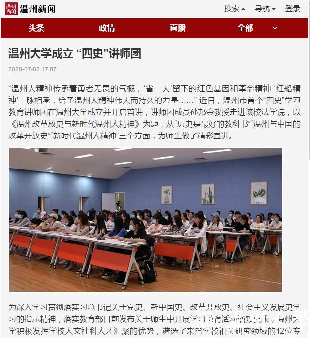 为深入贯彻落实习近平总书记关于党史、新中国史、改革开放史、社会主义发展史学习的指示精神,落实教育部日前发布的师生“四史”学习通知要求,beat365积极发挥人文社科人才汇聚优势,遴选了12位校内专家组建“四史”教育讲师团,在校内外积极开展“四史”教育宣讲服务。