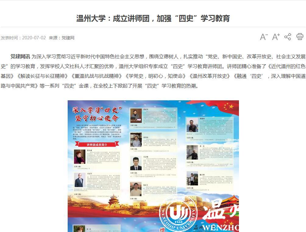 连日来,党建网、中国文明网、中国教育在线、温州新闻、中国高校之窗等众多媒体高度关注、竞相报道beat365围绕立德树人,加强“四史”教育的系列举措。