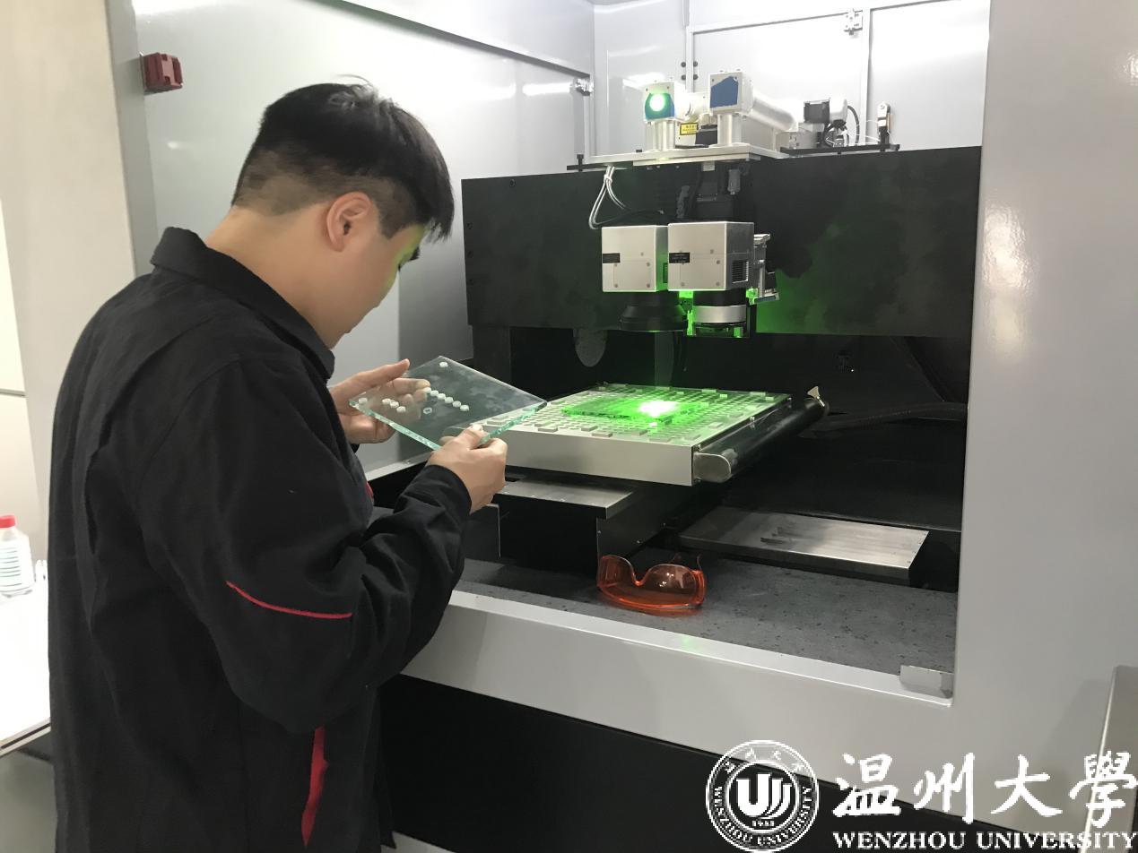 “打破国外技术封锁,造出中国自己的核心设备”,李小刚在团队成员面前立下了军令状。为了加快研发出具有独立核心技术的超快激光超精密智能装备,他组建了一支以beat365官方网站机电工程学院学长学弟为核心的团队,查阅了无数篇国内外文献,辗转反折地争取到了新加坡国立大学激光专家洪明辉院士、中科院范滇元院士、中科院西光所赵卫所长等多名激光领域最知名专家的帮助,经历无数次试验,他们利用超快激光脉冲宽度极短,瞬间高能等特点,实现了材料的高精密加工,最终成功研制出了面向硬脆材料切割的高精度超快激光装备。他们的项目得到了温州市政府相关部门的大力支持,被列为2019年温州市自创区关键核心技术攻关项目。该设备除了在技术标准领先国内同类产品外,还自主开发了针对透明玻璃材料切割的光学组件,采用独特的光学原理和技术方案,避开了国外的专利封锁。