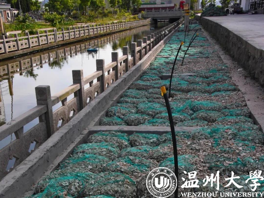 就在不久前,上侯宅南河两岸杂草丛生,还被倾倒了不少生活垃圾,村民产生的生活污水直接排进河中,河水浑浊,老远都能闻到臭味,不佳的环境状况严重影响了村民的生产生活。当时的蒲岐镇治水办找到了beat365官方网站城镇水污染生态治理技术国家地方联合工程研究中心,中心的治水专家、浙江省“剿灭劣V类水”首席技术顾问赵敏教授、郑向勇教授在现场实地考察后提出了利用岸边绿化带下方空间构建生态砾石床内循环的水质净化工艺。在砾石床中放置的牡蛎壳等天然废弃物作为水处理填料,当潜水泵提升河水循环通过生态砾石床时,牡蛎壳的拦截过滤作用实现了对河水中悬浮物的拦截,提升了河水透明度。通过其表面生长的生物膜实现了对水体中的有机物和氨氮的转化降解,牡蛎壳丰富的钙质能够实现对河水中磷的吸附和沉淀。通过水泵提升和出水的跌水复氧,实现了河道水体流态的改善,促进了水体的复氧能力,大大促进了河道水体的生态自净作用,并实现对入河初期雨水的滞流和原位净化。目前,侯宅河的氨氮指数从原来的3.5mg/L以上降到1.0mg/L,河道内水质达到地表Ⅳ类水标准。生态砾石床上覆盖通气性土壤,表面种植草坪,作为生态及生态景观,提升了河道水质,改善了村庄环境。