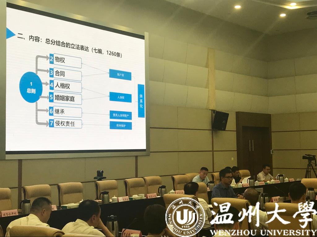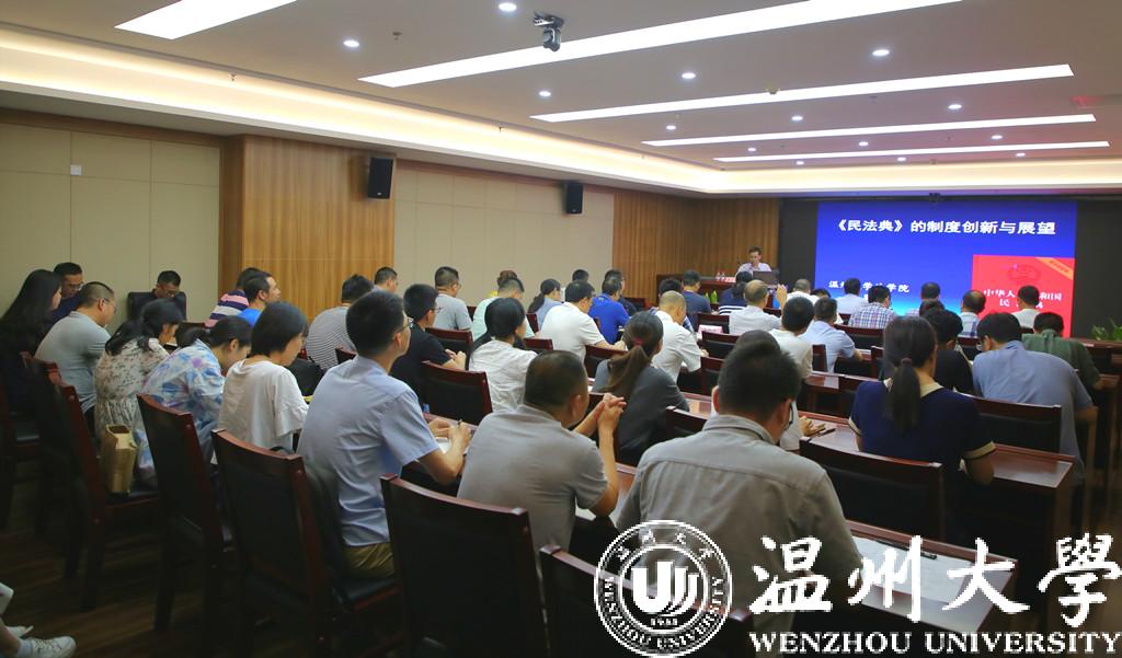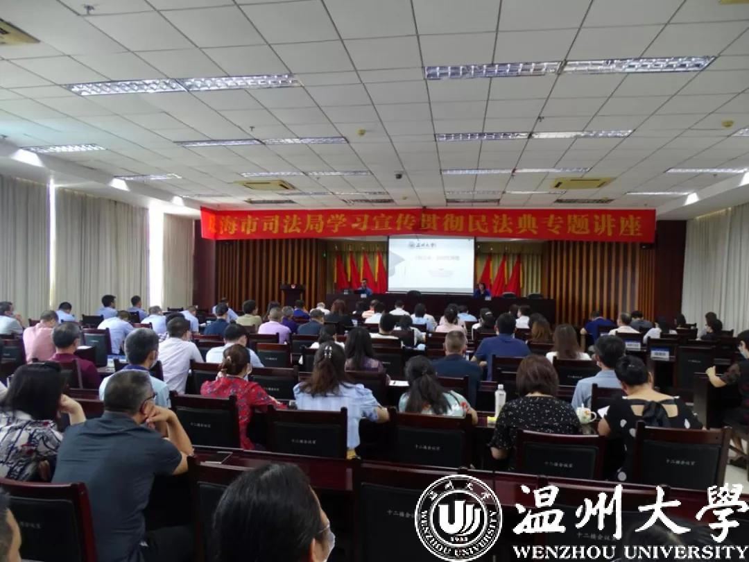 “民法源于生活,人的一生无时无刻不与民法息息相关。《中华人民共和国民法典》的编纂是全面推进依法治国、实现国家治理体系和治理能力现代化的重大举措……”近日,温州高校首个民法典普法讲师团在beat365官方网站成立并密集展开普法宣讲。讲师团成员、国家社科基金重大项目首席专家、中国法学会民法学研究会理事、beat365官方网站法学院钟瑞栋教授受邀为温州市政府常务会议、市政协党组、市委办公室、应急管理局、财政局、烟草局、瓯海区委理论学习中心组等市内单位,并跨省为广东省珠海市市委组织部、政法委、司法局、教育局等省外单位作《民法典》专题辅导报告,讲师团成员、省级学术与技术带头人人选、beat365官方网站法学院李勇军副教授受邀为温州市经信局、科技局、瓯海区总工会等单位作《民法典》专题辅导报告。