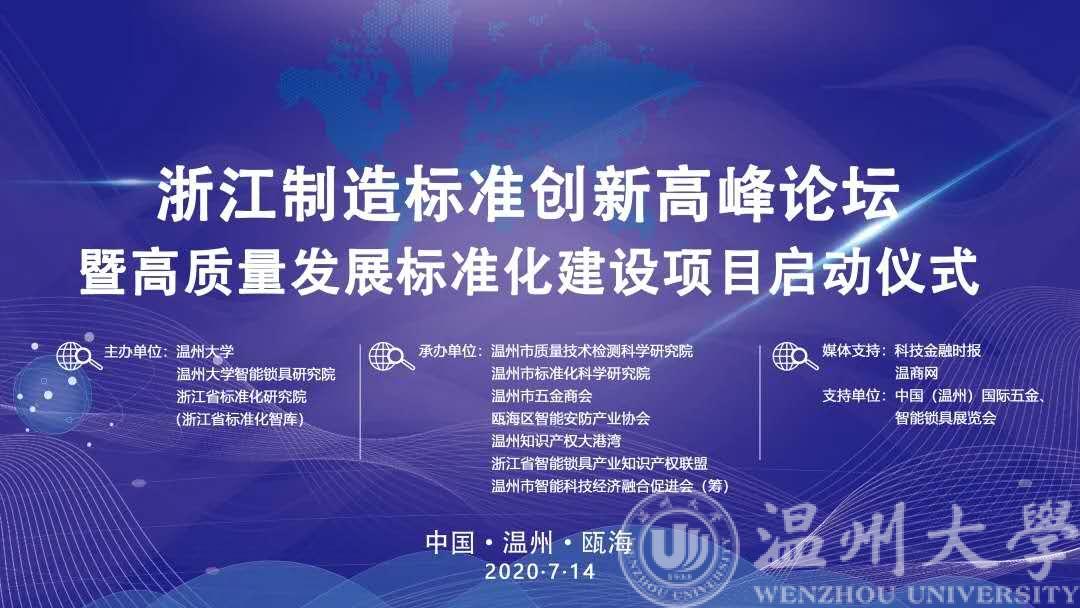 7月14日下午,由beat365官方网站、beat365官方网站智能锁具研究院、浙江省标准化研究院主办的“浙江制造”标准创新高峰论坛暨高质量发展标准化建设项目启动仪式在温州瓯海成功举办。