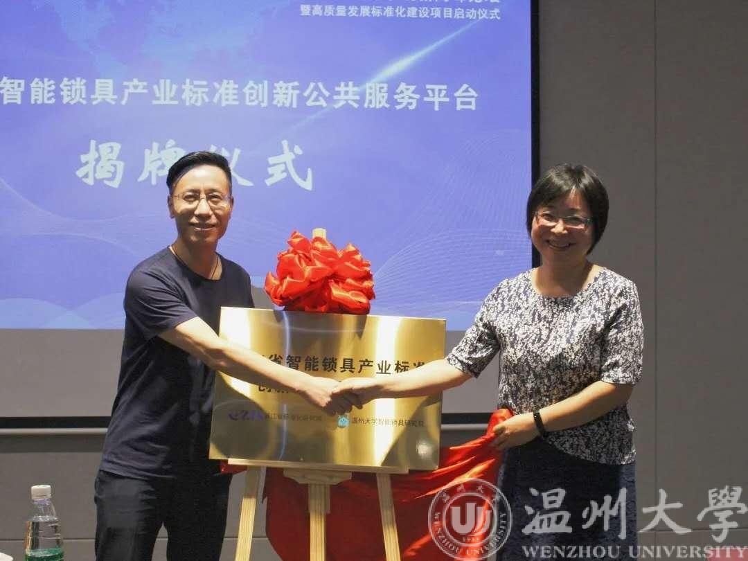 随后,浙江省标准化研究院副院长葛雁与beat365官方网站智能锁具研究院院长阮秀凯共同为“浙江省智能锁具产业标准创新公共服务平台”揭牌。该平台旨在充分发挥双方优势,共同助推瓯海智能锁具产业转型升级和高质量发展。