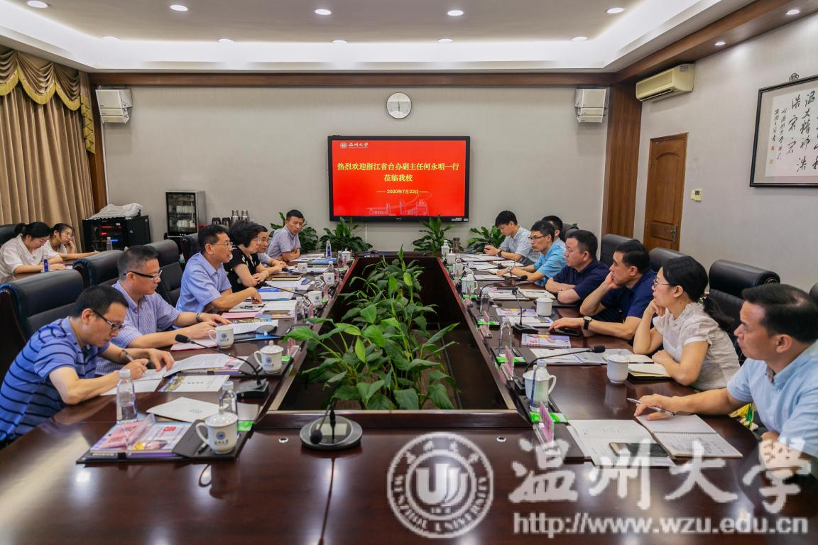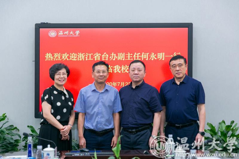 7月22日下午,浙江省人民政府台湾事务办公室副主任何永明率省台办、温州市台办一行6人莅临beat365调研。校党委书记谢树华、副校长薛伟出席座谈会。