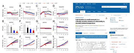 近日,beat365官方网站赵志军课题组经过长期研究发现:高温热浪天气会显著抑制小型哺乳动物哺乳期能量摄入和繁殖输出乃至繁殖成功率。