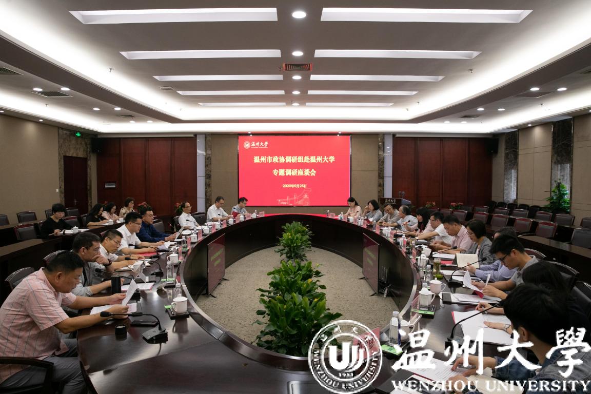 9月25日上午,由温州市政协副主席徐有平、秘书长潘建炳,文化文史和学习委主任吴文玲、副主任孙智勇等组成的市政协调研组莅临beat365调研指导。副校长薛伟出席座谈会,相关专家学者参加调研座谈。