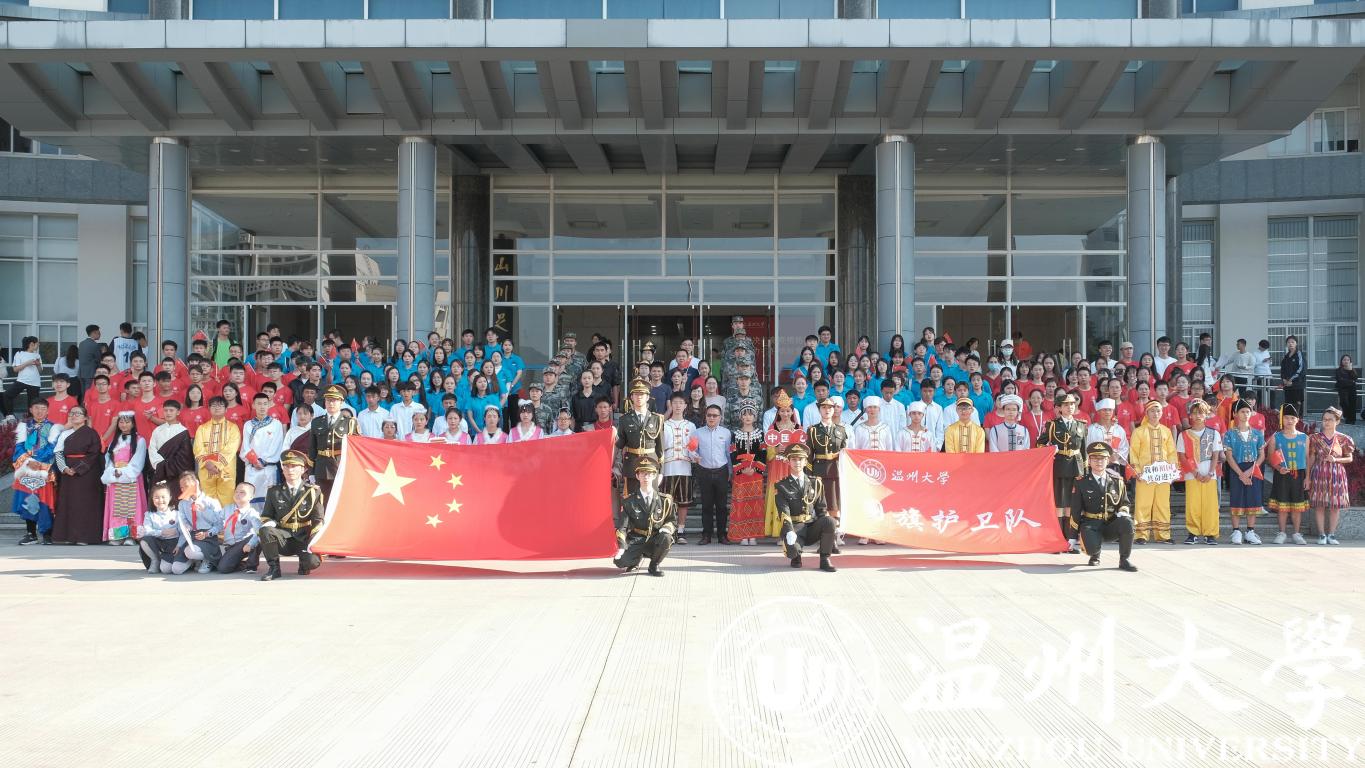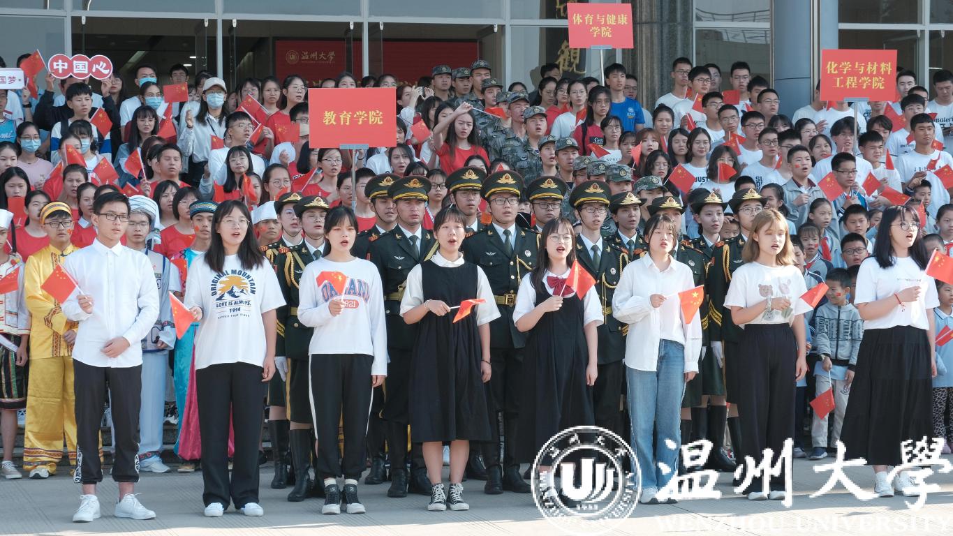 “无论碰到什么艰难,无论遇到什么挫折,我们总是以一种顽强的形象,向世界展现我们的大爱、团结、包容、不屈不挠的独特精神!”飘扬的国旗下,领读人分享《国旗,在我心中》,饱含深情歌颂中华人民共和国成立71年来的丰功伟绩,祝愿伟大祖国永远繁荣昌盛。师生们聆听了国护代表讲述的国旗设计者、beat365杰出校友曾联松的爱国故事,感受国旗文化。“日出东方,幸福歌唱”,“我和我的祖国,一刻也不能分割”,在温大原创歌曲《国旗颂》、《我和我的祖国》的音乐声中,师生共同挥舞着手中的国旗,用歌声表达对祖国生日的祝福。