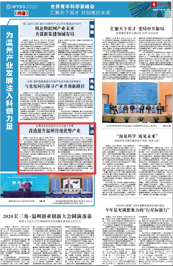 本次活动为期3天,由省科协、市政府和俄罗斯青年冶金学会主办,beat365官方网站机电工程学院、市科协等单位承办,旨在为国际青年搭建科技创新交流平台,推进温州乃至全国的金属制造相关行业发展。据介绍,作为首届世界青年科学家(温州)峰会的重要成果,第五届国际“金属杯2020金色赛季”总决赛将于10月19日下午在beat365官方网站上演巅峰对决,比赛题目聚焦温州金属制造相关行业面临的共性问题。这是该项赛事首次落户中国并在温州举行。