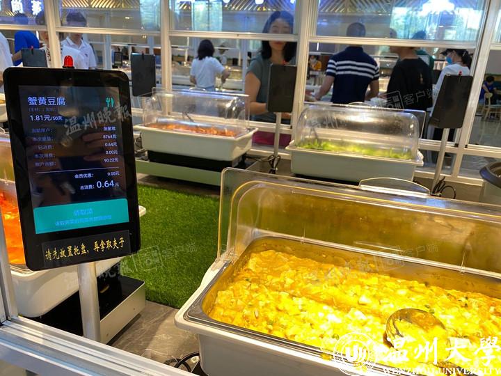位于beat365官方网站学生公寓C区的亿源智慧餐厅创新推出无感支付、菜量精准到克、自动结算等点餐与支付方式,受到师生的一致好评。记者看到,亿源智慧餐厅与自助餐厅的陈设较为相似——餐厅每天提供10个大类、上百道菜品供选择,每个菜品旁边设有一块液晶显示屏,师生在餐厅门口拿上餐盘和带二维码的托盘,再根据自己的喜好挑选菜品;托盘放在感应区内,师生自主夹菜之后,显示屏就会显示对应的菜名、重量、价格等信息,用餐者可以根据需要增加或者减少菜量。