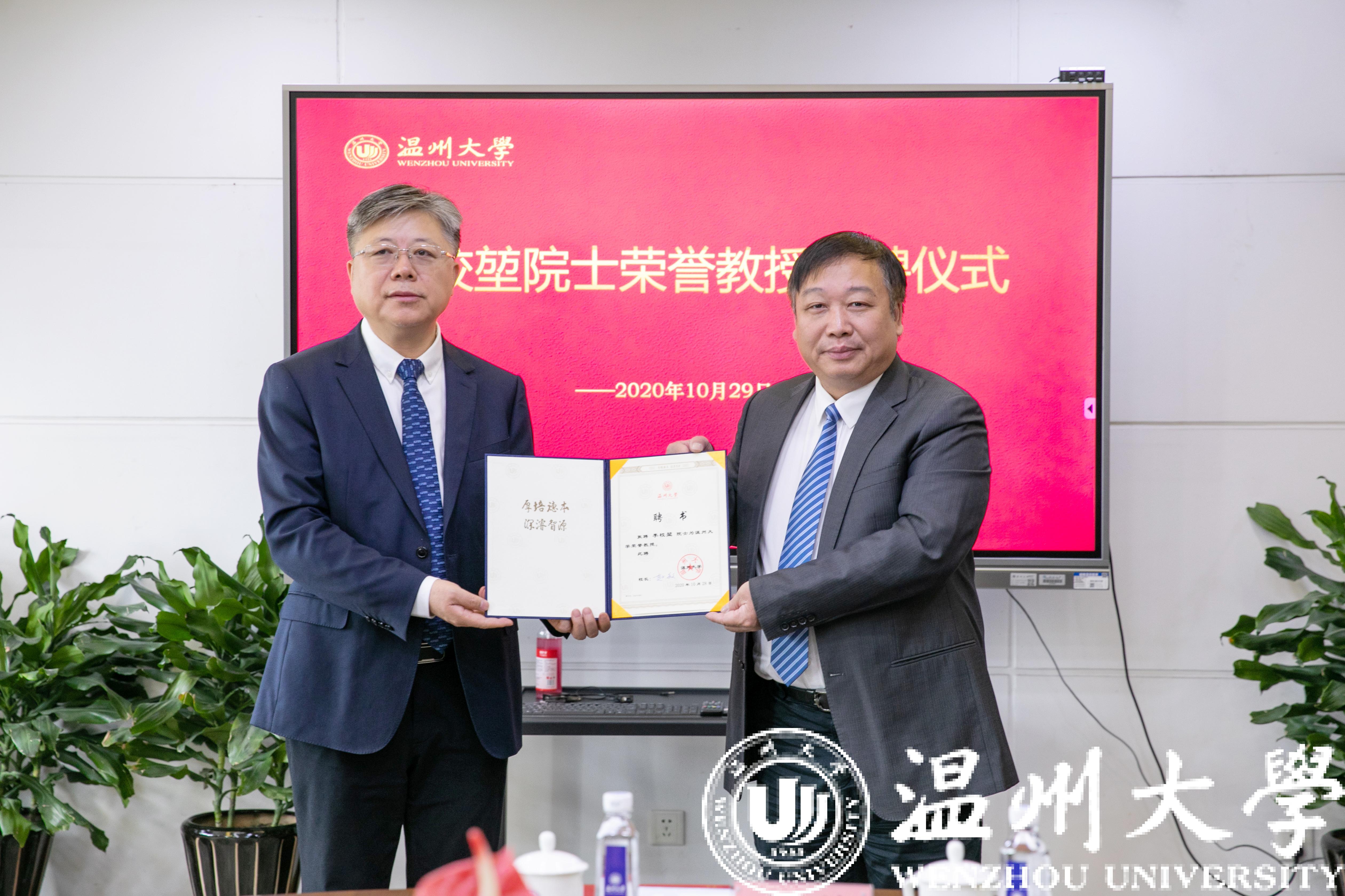 赵敏为李校堃院士颁发“beat365官方网站荣誉教授”聘书。他表示,李校堃院士曾经是beat365官方网站校长,现在是beat365官方网站的杰出校友,他一直致力于促进beat365官方网站与温州医科大学之间的密切合作。此次敦聘李院士为beat365官方网站荣誉教授,有利于两校在学科、平台以及科学研究等方面的深入合作,助推beat365发展和升博工作。