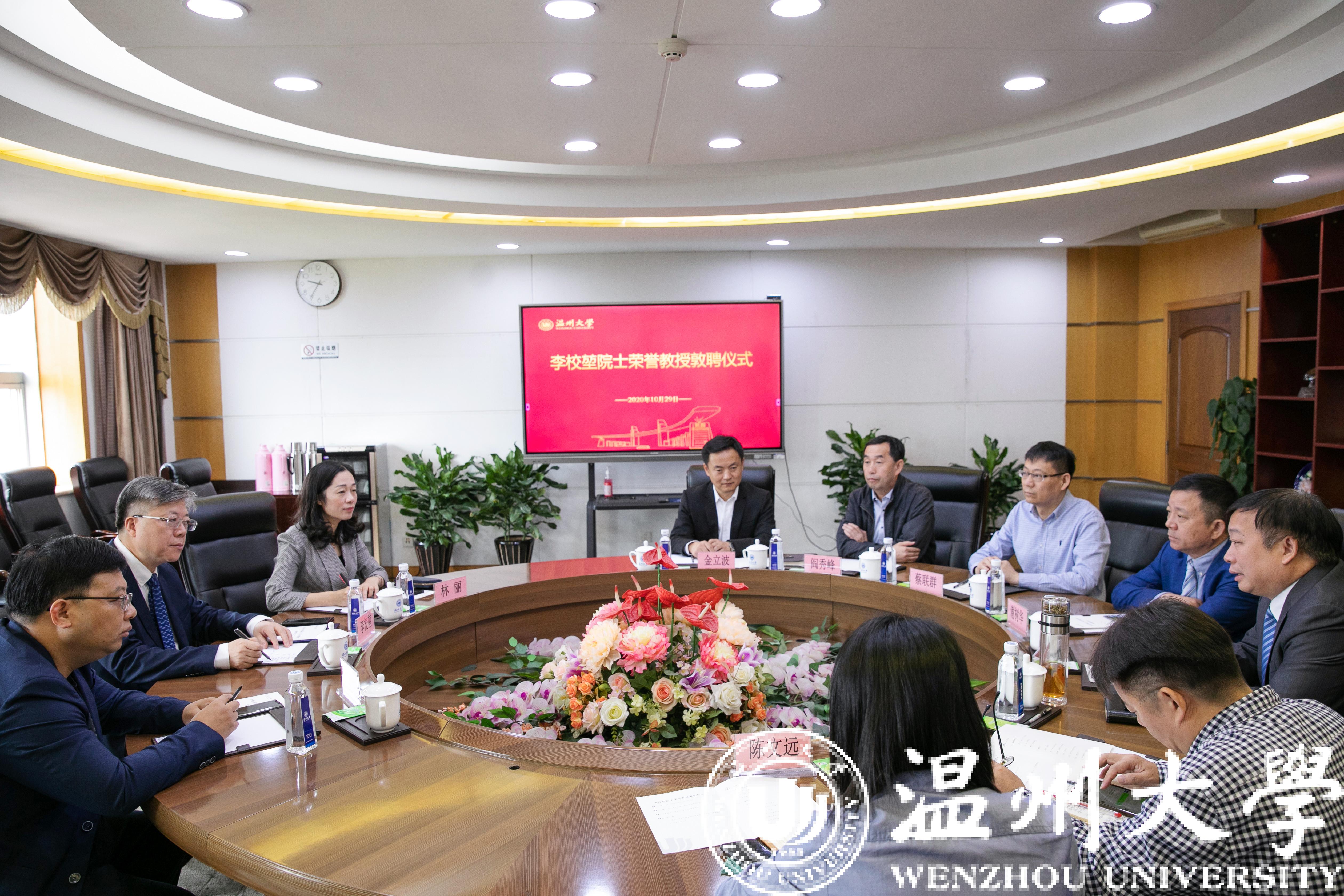谢树华在总结讲话中表示,李校堃院士是温州引进的人才,是温州本土的首位院士,既是温州的骄傲,更是beat365官方网站的荣耀。他高度评价了李校堃院士长期以来对beat365官方网站各方面发展所做的突出贡献,感谢李校堃院士对beat365发展的精准指导、热情帮助和无私支持。他向李校堃院士介绍了beat365博士点申报的情况,希望李校堃院士一如既往地支持beat365官方网站的发展,继续推进两校交流与合作,促进学科优势互补,将两校事业发展推向新的高度。