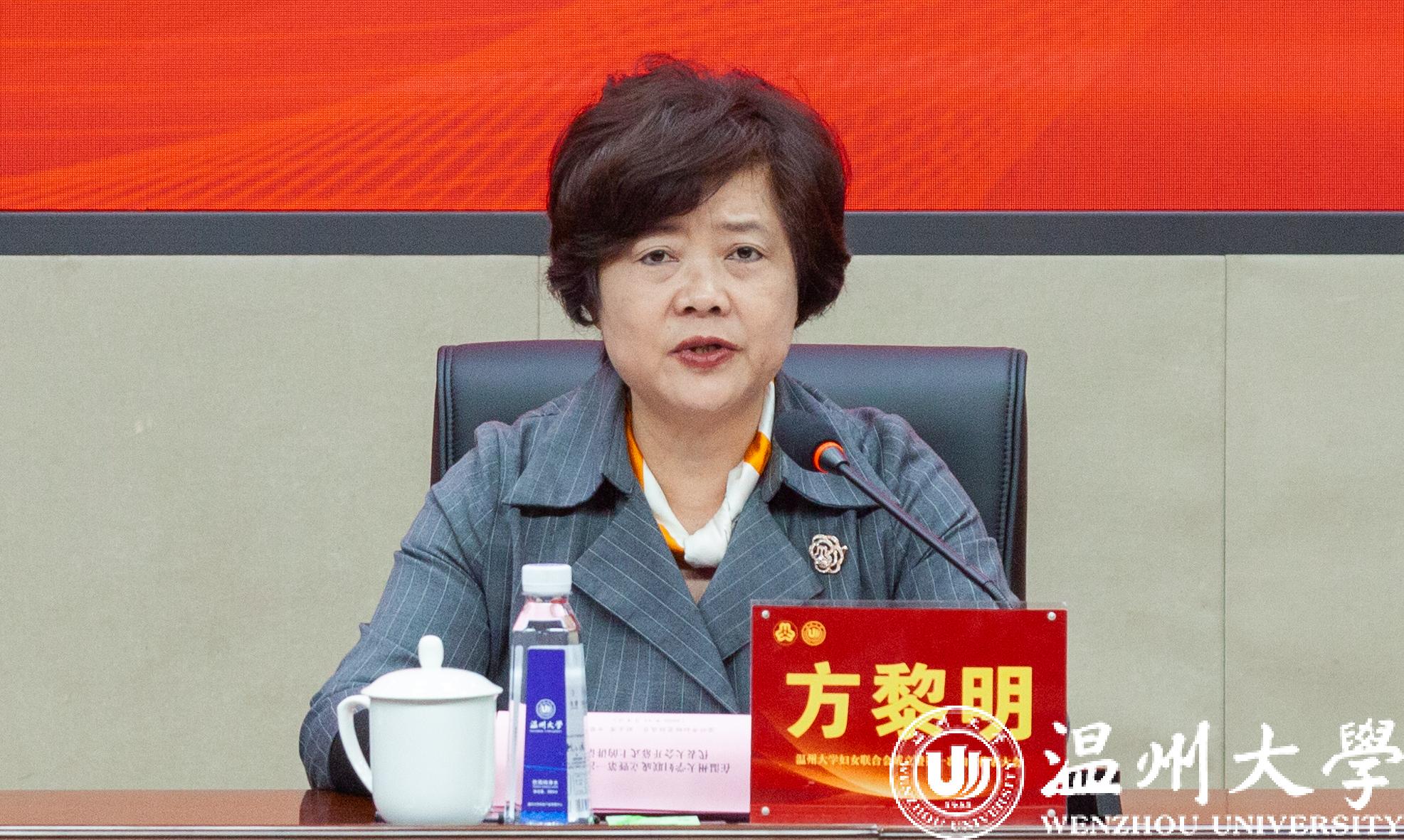 方黎明在致辞中表示,beat365官方网站妇女联合会的成立,是学校广大妇女政治生活中的一件大事,也是温州乃至全省高校妇联组织建设的一件喜事;既是认真落实省委高质量推进新时代党建带群建工作的具体举措,也是深化全省妇联组织建设改革的实际行动,是加强新时代温州高校妇联组织建设的生动实践。她充分肯定了温大女性师生在学校发展中作出的重大贡献和beat365党委对妇联组建工作的高度重视,并对beat365妇联工作提出四点希望:一是践行新思想,强化政治引领;二是找准新定位,服务妇女需求;三是履行新职能,助推学校发展;四是把握新机遇,加强自身建设。希望温大妇女工作和妇女事业跃上新台阶、再创新辉煌。