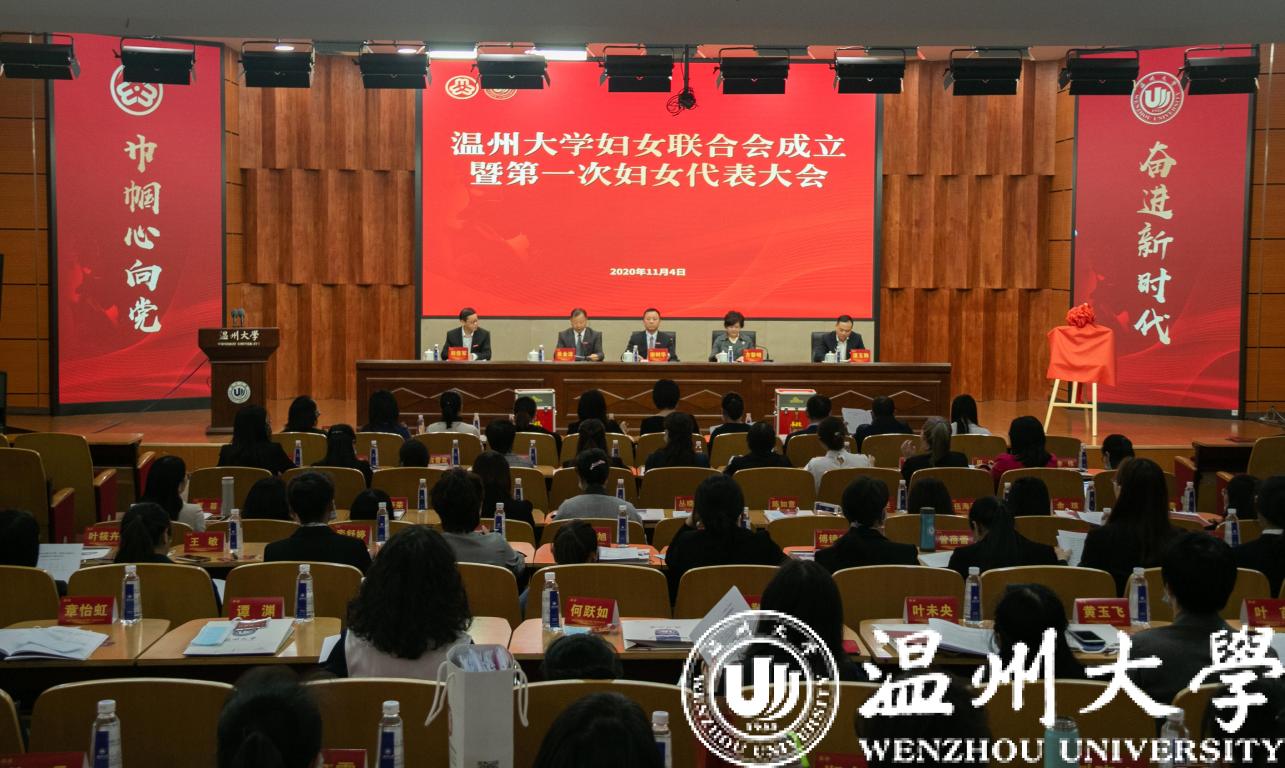 11月4日下午,beat365官方网站妇女联合会成立暨第一次妇女代表大会在岩松堂雁山厅隆重举行。温州市妇联副主席方黎明,校领导谢树华、吴金法、潘玉驹、郑信军出席大会开幕式,全体妇代会代表、相关职能部门负责人参加大会。大会由校党委副书记吴金法主持。