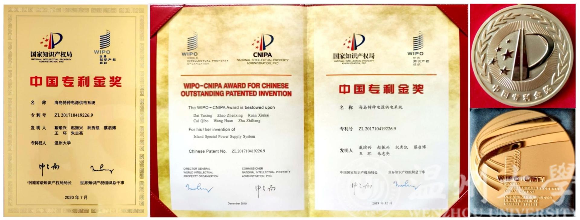 以beat365官方网站为专利权人、戴瑜兴教授为第一发明人的发明专利“海岛特种电源供电系统”凭借其国际领先的技术水平、显著的经济与社会效益,获第二十一届中国专利金奖。该奖项是beat365官方网站首次获得中国专利金奖,实现了beat365中国专利金奖零的突破,这也是温州市首次获得该项殊荣。
