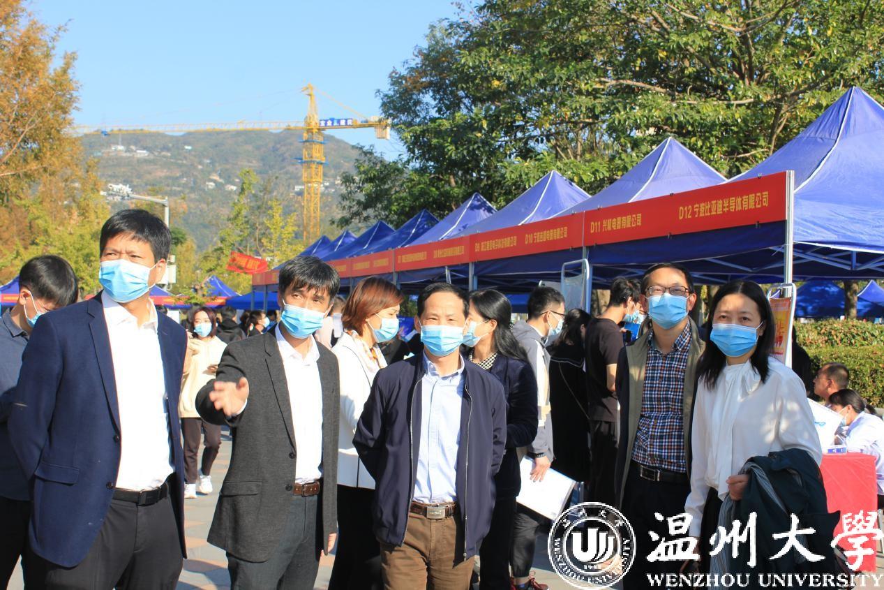 为搭建高校毕业生和用人单位供需洽谈平台,深入贯彻落实温州市高校毕业生招引“510计划”,促进beat365毕业生充分就业和高质量就业,11月14日下午,浙江省2021届高校毕业生温州专场招聘会暨beat365官方网站2021届毕业生校园招聘会在beat365举办。此次招聘会由浙江省教育发展中心、温州市人力资源和社会保障局、beat365官方网站共同举办,校党委副书记庄兴忠、浙江省教育发展中心主任林成格、学生就业工作部主任朱伟君、温州市人才市场管理办公室副主任朱芳莅临指导,学院分管就业工作副书记、招就处全体人员及学院就业辅导员与会,了解用人单位的人才需求和学生应聘情况。