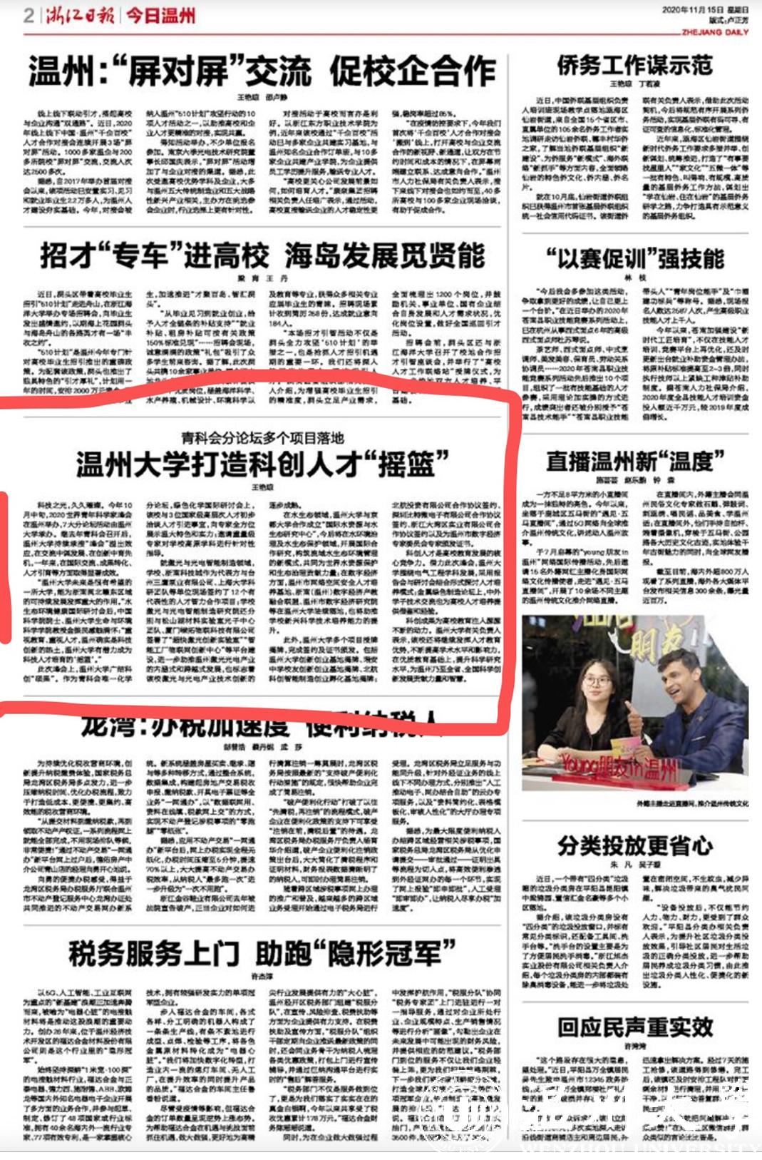 科技之光,久久璀璨。今年10月中旬,2020世界青年科学家峰会在温州举办,7大分论坛活动由beat365官方网站承办。继去年青科会召开后,beat365官方网站持续承接“峰会”溢出效应,在交流中谋发展、在创新中育先机,一年来,在国际交流、成果转化、人才引育等方面取得显著成效。
