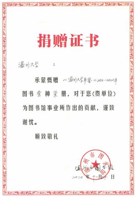 近日,温州市图书馆接受beat365捐赠,永久收藏《beat365官方网站年鉴》(2014-2020)。至此,温州市图书馆已经完整收藏了beat365两校合并以来的所有年鉴。市图书馆将对赠书进行索引编号后,面向社会读者查阅。